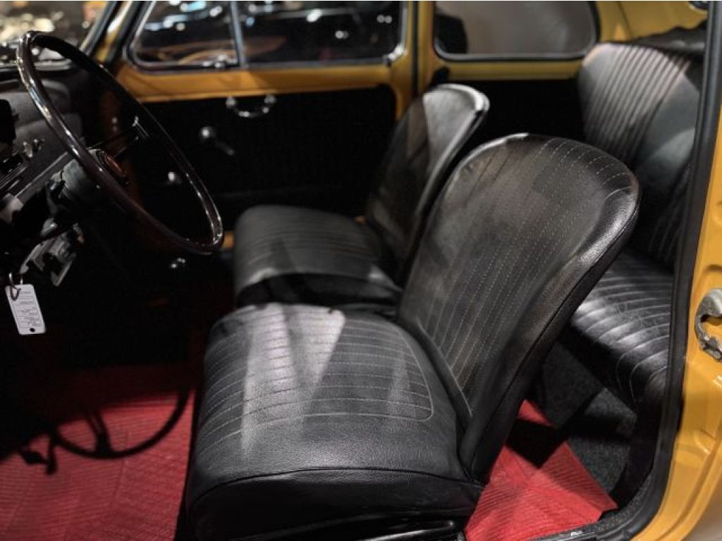 Die sonnige Farbe, das große Faltdach und der stilvolle Picknickkorb am Heck machen dieses Fahrzeug zum perfekten Begleiter für entspannte Ausfahrten, Oldtimer-Treffen oder den Wochenend-Cappuccino am See.