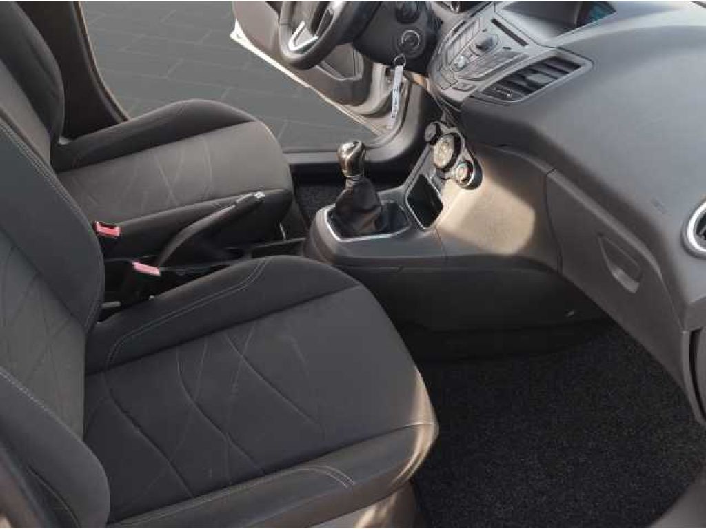 Airbag (Seitenairbags) vorn, Airbag, Kopf-Schulterairbags vorn u. hi., Airbag: Frontairbag vorne, Airbag: Knieairbag, ABS elektronisch mit EBD, Elektronisches-Stabilitäts-Pr. Traktion., Berganfahrassistent, Bordcomputer, Colorglas, Drehzahlmesser, Fensterheber elektrisch vorne, Heckscheiben-Wisch-/Waschanlage, Isofix-Halterung, Kopfstützen vorn, 2 Kopfstützen hinten, Sitz: Rücksitzlehne umklappb.,40 : 60, Außenspiegel verstellb. u. beh.(2), Getriebe: 5-Gang-Schaltgetriebe, Servolenkung elektro-mechanisch, geschw., Airbag: Beifahrerairbag-Deaktivierung, Dachspoiler m. integr. 3. Bremsleuchte, Gepäckraumbeleuchtung, Grundausstattung (Fiesta), Mittelkonsole vorn, Reifendruckkontrollsystem TMPS, Scheinwerfer-Abblendlicht, Zusatzheizung, Räder: Reifen-Reparatur-Set, Räder: Stahl 6Jx15 mit 195/55 R15, Fahrersitz-Höhenverstellung, manuell, Lederhandbremsgriff, Lenkrad: Lederlenkrad 3-Speichen-Design, Lenksäule, verstellbar, Pollenfilter, Polster: Stoff, Sitz:Kartenta. F/ Beifahrersitzrücklehne, Außenspiegel in Wagenfarbe, Lackierung: Uni, Stoßfänger hinten mit Diffusor-Optik, Stoßfänger in Wagenfarbe lackiert, Türgriffe in Wagenfarbe lackiert, Start-Stopp-System, Scheinwerfer im Projektionslinsen-Desing, Wegfahrsperre, Zentralverriegelung mit Fernbedienung