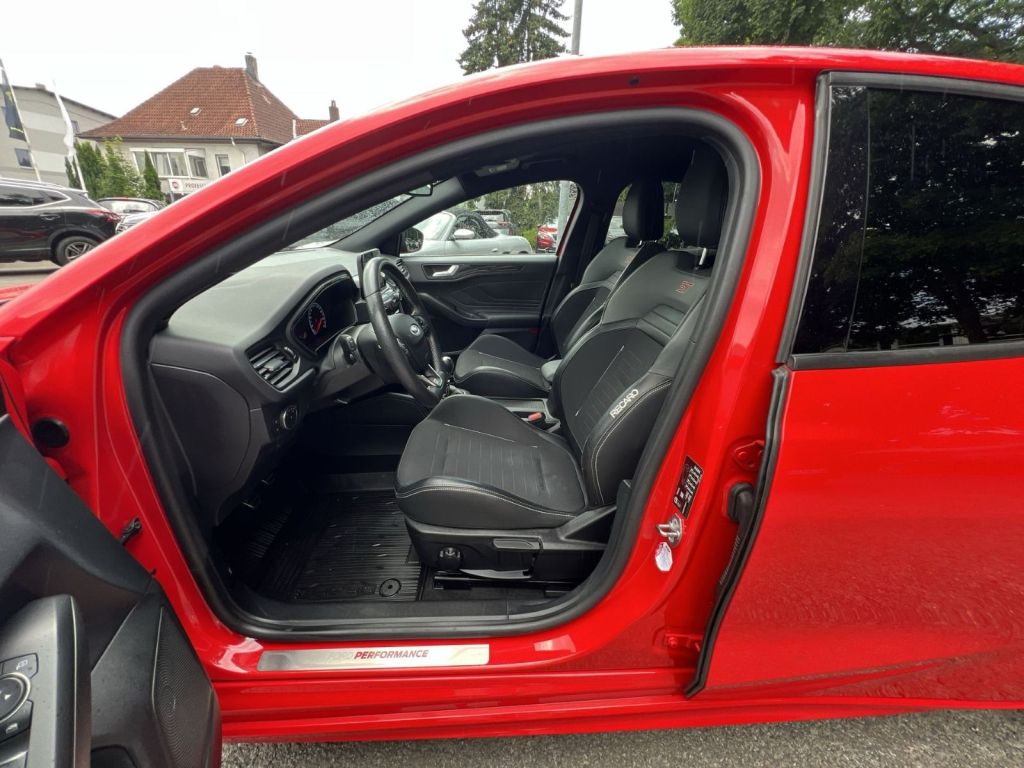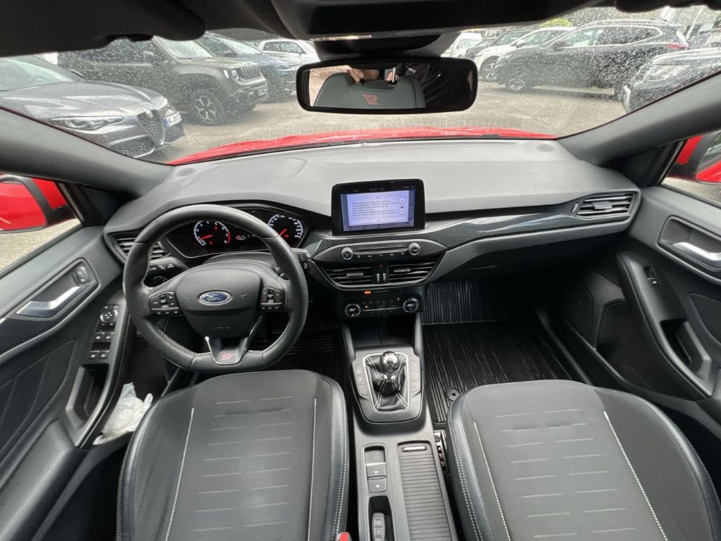Assistenzsysteme: Anti-Blockier-System (ABS) Antischlupfregelung (ASR) Fahrassistenz-System: Sicherheitssystem SYNC mit automatischem Notruf Elektr. Bremskraftverteilung (EBD) Elektron. Differentialsperre (EDS) Sperrdifferential Elektron. Stabilitäts-Programm (ESP) Fahrassistenz-System: Berganfahr-Assistent (Hill-Holder) Fahrassistenz-System: Notbrems-Assistent Fahrassistenz-System: Pre-Collision-System Fahrassistenz-System: Auffahrwarnsystem Fahrassistenz-System: Spurhalteassistent Geschwindigkeits-Regelanlage (Tempomat) Intelligent Protection System (IPS) Intelligenter Geschwindigkeits-Begrenzer Geschwindigkeits-Begrenzeranlage Interaktives Fahrwerkssystem (IVDC) Parkbremse elektrisch mit Auto-Hold-Funktion Reifendruck-Kontrollsystem Scheibenwischer mit Regensensor Scheinwerfer-Assistent mit Tag-/Nachtsensor Multimedia: Audio-Navigationssystem Ford mit AppLink 6 Lautsprecher Sprachsteuerung und Bluetooth-Schnittstelle Vorrüstung Mobiltelefon/Handy mit Bluetooth-/USB-Schnittstelle Ford SYNC 3 mit Navigation Technik Sicherheit: Airbag Beifahrerseite abschaltbar Außenspiegel elektr. anklappbar Außenspiegel elektr. verstell- und heizbar Fensterheber elektrisch vorn + hinten mit Komfortschließung Getriebe 6-Gang - Typ: MMT6 Airbag Fahrer-/Beifahrerseite Kopf-Schulter-Airbag vorn und hinten Seitenairbag vorn Sport-Fahrwerk Fahrwerksdämpfung elektronisch geregelt Isofix-Aufnahmen für Kindersitz Klimaautomatik 2-Zonen My Key (2. Fahrzeugschlüssel programmierbar) Nebelscheinwerfer mit statischem Abbiegelicht Nebelscheinwerfer LED Parkpilotsystem vorn und hinten Power KeyFree-Startfunktion Schadstoffarm nach Abgasnorm Euro 6d-TEMP Servolenkung elektrisch Start/Stop-Anlage Tagfahrlicht LED Zentralverriegelung mitFernbedienung Heckleuchten LED Scheinwerfer LED Interieur: Audiobedienung am Lenkrad Bord-/Verbrauchscomputer Dachhimmel Stoff, dunkel Farbdisplay für Bordcomputer Gepäckraumabdeckung / Rollo Innenspiegel mit Abblendautomatik Mittelarmlehne vorn mit Staufach und 12V-Anschluß Rücksitzlehne geteilt/klappbar (60:40) Lendenwirbelstütze Sitz vorn links Sportsitze vorn (Recaro) Teilleder Sportsitze vorn Winter-Paket Frontscheibe heizbar Lenkrad heizbar Sitzheizung vorn Exterieur: LM-Felgen Anhängerkupplung Vorbereitung LM-Felgen 8x19 (5-Speichen, Y-Design, Magnetite) Sonstiges: Bodenleuchte im Außenspiegel Body-Styling-Paket Schwellerverbreiterung Dachspoiler (große Ausführung) Wagenfarbe Dimmer Instrumentenbeleuchtung Doppelendrohr Auspuffanlage Fahrassistenz-System: Post-Collision-System FordPass Connect inkl. eCall Innenraumfilter: Staub- und Pollenfilter 3-Punkt-Sicherheitsgurt hinten Kopfstützen hinten mechan. verstellbar (3 Stück) Lackierung Race-Rot Lenkrad (Sport/Leder, ST) Lenksäule (Lenkrad) höhen-/längsverstellbar Mittelkonsole Premium Getränkehalter vorn Motor 2,3 Ltr. - 206 kW EcoBoost KAT Pedale Aluminium Schalt-/Wählhebelgriff Aluminium Schaltpunktanzeige Scheinwerfer mit abgedunkelten Hintergrund Scheinwerfer mit Ausschaltverzögerung Si