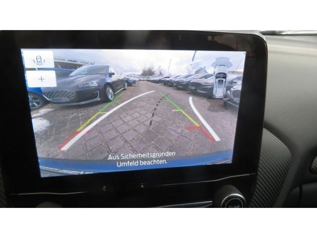 Ambiente-Beleuchtung vorn (LED), Antischlupfregelung (ASR), Audio-Navigationssystem Ford mit AppLink, Außenspiegel elektr. anklappbar, Außenspiegel elektr. verstell- und heizbar, Body-Styling-Paket, Dachhimmel Stoff, dunkel, Eco-Anzeige für verbrauchsoptimiertes Fahren (EcoCoach), Einparkhilfe hinten, Fahrassistenz-System: Berganfahr-Assistent (Hill-Holder), Fahrassistenz-System: Falschfahrer-Warnfunktion, Fahrassistenz-System: Fernlichtassistent (Scheinwerfer mit Abblendautomatik), Fahrassistenz-System: Notbrems-Assistent, Fahrassistenz-System: Post-Collision-System, Fahrassistenz-System: Pre-Collision-System, Fahrassistenz-System: Spurhalteassistent mit Müdigkeitserkennungs-Sensor, Fahrassistenz-System: Verkehrsschildassistent, Farbdisplay für Bordcomputer, Fensterheber elektrisch vorn + hinten mit Komfortschließung, FordPass Connect inkl. eCall, Fußmatten Teppich, Getriebe 7-Gang - Doppelkupplungsgetriebe, Heckleuchten LED, Innenraumfilter: Staub- und Pollenfilter, Intelligent Protection System (IPS), Intelligenter Geschwindigkeits-Begrenzer, Isofix-Aufnahmen für Kindersitz, Karosserie: 5-türig, Kombiinstrument Digitalanzeige 12,3 Zoll, Komfort-Paket, Kopfstützen hinten mechan. verstellbar (3 Stück), Laderaumboden variabel (Ford Megabox), Lendenwirbelstütze vorn, Lenkrad (Sport/Leder, ST), Lenkrad mit Schaltwippen, Lenksäule (Lenkrad) höhen-/längsverstellbar, LM-Felgen, Mild-Hybrid 92 kW (Motor 1,0 Ltr. - 92 kW EcoBoost), My Key (2. Fahrzeugschlüssel programmierbar), Nebelscheinwerfer LED, Otto-Partikelfilter (OPF), Pedale Aluminium, Radstand 2588 mm, Reifen-Reparaturkit, Reifendruck-Kontrollsystem, Rücksitzlehne geteilt/klappbar (60:40), Schadstoffarm nach Abgasnorm Euro 6d, Scheinwerfer-Assistent mit Tag-/Nachtsensor, Sitzbezug / Polsterung: Kunstleder, Sitze vorn höhenverstellbar, Sonnenblende links mit Spiegel (beleuchtet), Sonnenblende rechts mit Spiegel (beleuchtet), Sport-Fahrwerk, Sportsitze vorn, Standard Variante, Start/Stop-Anlage, Türgriffe außen Wagenfarbe, Verglasung hinten abgedunkelt (Privacy Glass)