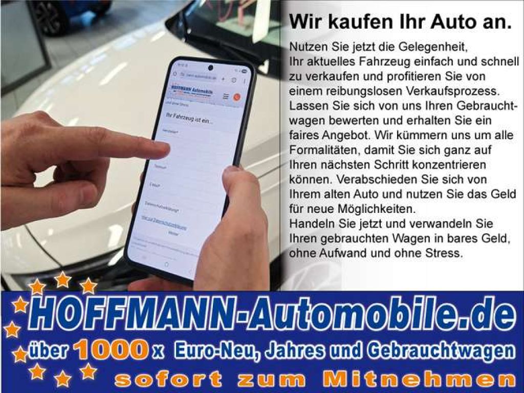Inzahlungnahme-Bonus Erhalten Sie 1000€ zusätzlich für Ihren gebrauchten Pkw bei Ankauf von uns, verlängert bis zum 28.02.2026. BONUSAKTION - limitiert u. zeitlich befristet -, Finanzierungs- u. Leasingvermittlung zu TOP-Konditionen - Inzahlungnahme möglich - seit 1967 Ihr Profi für TOP-Preise und TOP-Service Repräsentatives Finanzierungsbeispiel Anzahlung: 5.890,00 € Nettodarlehen: 26.242,75 € 35 Monatsraten: 389,07 € Schlussrate: 16.197,50 € Gesamtdarlehensbetrag: 29.814,96 € Laufzeit Gesamt: 36 Monate effektiver Jahreszins: 5,99 % Gebundener Sollzins: 5,97 % Bearbeitungsgebühren: 0,00 €Vorstehende Angaben stellen zugleich das 2/3-Beispiel gem. 6a Abs. 3 PAngV dar. Bonität vorausgesetzt. Nettodarlehensbetrag ist inklusive einer auf Kundenwunsch mitfinanzierten Ratenschutz-, Arbeitslosen- und Kaufpreisversicherung. Ihre Wunschfinanzierung maßgeschneidert zu günstigen Konditionen - auch ohne Anzahlung, ohne lange Wartezeiten und zusätzliche Bankwege, über eine unserer Partnerbanken. Erleben Sie die Zukunft der Mobilität – mit dem Mercedes-Benz B 200 Progressive Line Stellen Sie sich die Freiheit vor, mit der Sie die Straßen erobern können, während Technologie und Eleganz in perfekter Harmonie aufeinandertreffen. Der Mercedes-Benz B 200 Progressive Line ist nicht einfach nur ein Auto – er ist Ihr stilvoller Begleiter, der jedes Detail Ihrer Reise verfeinert und gleichzeitig die Effizienz eines fortschrittlichen Hybrid-Benziners mit der Power von 163 PS kombiniert. Faszination in Bewegung: Ihr dynamischer Partner Von dem Moment an, in dem Sie die weiche Kurve der Tür ziehen und auf den luxuriösen Teilledersitzen Platz nehmen, spüren Sie das Streben nach Perfektion. Die Klimaautomatik sorgt dafür, dass Sie stets in einer angenehmen Atmosphäre reisen, während das Sportlederlenkrad mit Schaltwippen Ihnen grenzenlose Kontrolle bietet. Mit der siebengängigen Automatik gleiten Sie sanft über jeden Asphalt, spürbar unterstützt von der innovativen Start-Stopp-Automatik. Eleganz trifft Funktionalität: Ihr Alltag - neu definiert Ob in einer geschäftigen Stadt oder auf einer malerischen Landstraße, das glanzvolle weißmetallische Finish und die beeindruckenden 17-Zoll-Alufelgen hinterlassen einen bleibenden Eindruck. Wappnen Sie sich für unerwartete Wetteränderungen – die beheizten Außenspiegel und Scheibenwaschdüsen sind auf Ihre Bedürfnisse abgestimmt, während LED-Scheinwerfer und der Fernlichtassistent jede Nacht durchstrahlen. Die umklappbare Anhängerkupplung sorgt dafür, dass auch größere Herausforderungen, wie der Transport eines Anhängers mit bis zu 1.600 kg, mühelos gemeistert werden können. Technologie auf höchstem Niveau: Immer einen Schritt voraus Die digitale Zukunft ist bereits an Bord. Das volldigitale Kombiinstrument mit intuitiver Touchscreen-Navigation sorgt dafür, dass Sie immer Ihr Ziel kennen. App-Connect und WLAN halten Sie in Verbindung mit der Welt, während Sie dank Sprachsteuerung und Freisprechanlage Ihre Hände sicher am Multifunktionslenkrad lassen. Ihr Weg wird von einem intelligenten Netz aus Fahrassistenten gesichert: Spurhalte-Assistent, Verkehrsschild-Assistent und ein selbstlenkendes Einparksystem ermöglichen Ihnen ein sorgenfreies Fahrerlebnis, während Airbags frontal, seitlich und weitere Airbags für allumfassenden Schutz sorgen. Ihre Wohlfühlzone auf Rädern Sitzheizungen vorne und beleuchtete Make-up-Spiegel sorgen für Gemütlichkeit, während der variabel gestaltbare Ladeboden jedem Stauraumwunsch gerecht wird. Die Mittelarmlehne vorne und Lendenwirbelstützen garantieren Komfort auf langen Strecken, während die multifunktionale Rückbank Platz für alle Eventualitäten bietet. Ein Angebot, das begeistert Genießen Sie den Luxus, den Mercedes-Benz bietet, mit einer einzigartigen Ersparnis von 36 %. Bei nur 11.987 gefahrenen Kilometern und einem unschlagbaren Preis von 29.450 Euro erleben Sie höchste Präzision und beste Qualität – ein Versprechen, das nur Mercedes halten kann. Bereit für Ihre nächste Reise? Es ist Zeit, die Straße neu zu erfahren – mit dem Mercedes-Benz B 200 Progressive Line. Ihr Tor zu unvergleichlichem Fahrvergnügen und raffinierten Abenteuern. Warum noch warten? Ihr stilvolles Fahrerlebnis beginnt jetzt.We speak english, Hablamos español, Nous parlons français, Parliamo italiano, Mówimy po polsku, Mes kalbame lietuviskai, Noi vorbim romaneste. Zugriff auf über 5000 Werks- und Jahreswagen von Mercedes - sofort lieferbar! HOFFMANN-Automobile.de mit über 1000 EU-Neuwagen, Jahreswagen und Gebrauchtwagen - sofort zum Mitnehmen! Firmenvideo : http://www.youtube.com/watch?v=4Sfh00LtX4g ²Ersparnis zur unverbindlichen Preisempfehlung des Herstellers zum Inlandsmodell.