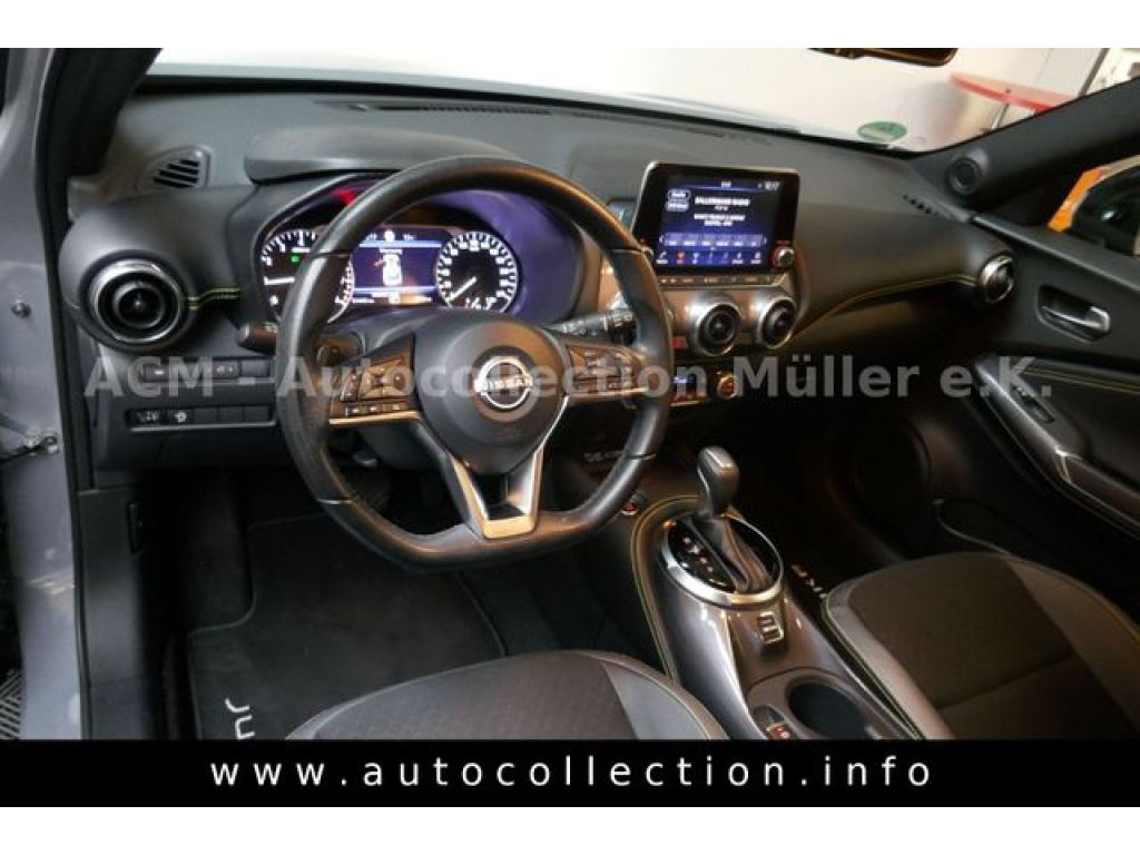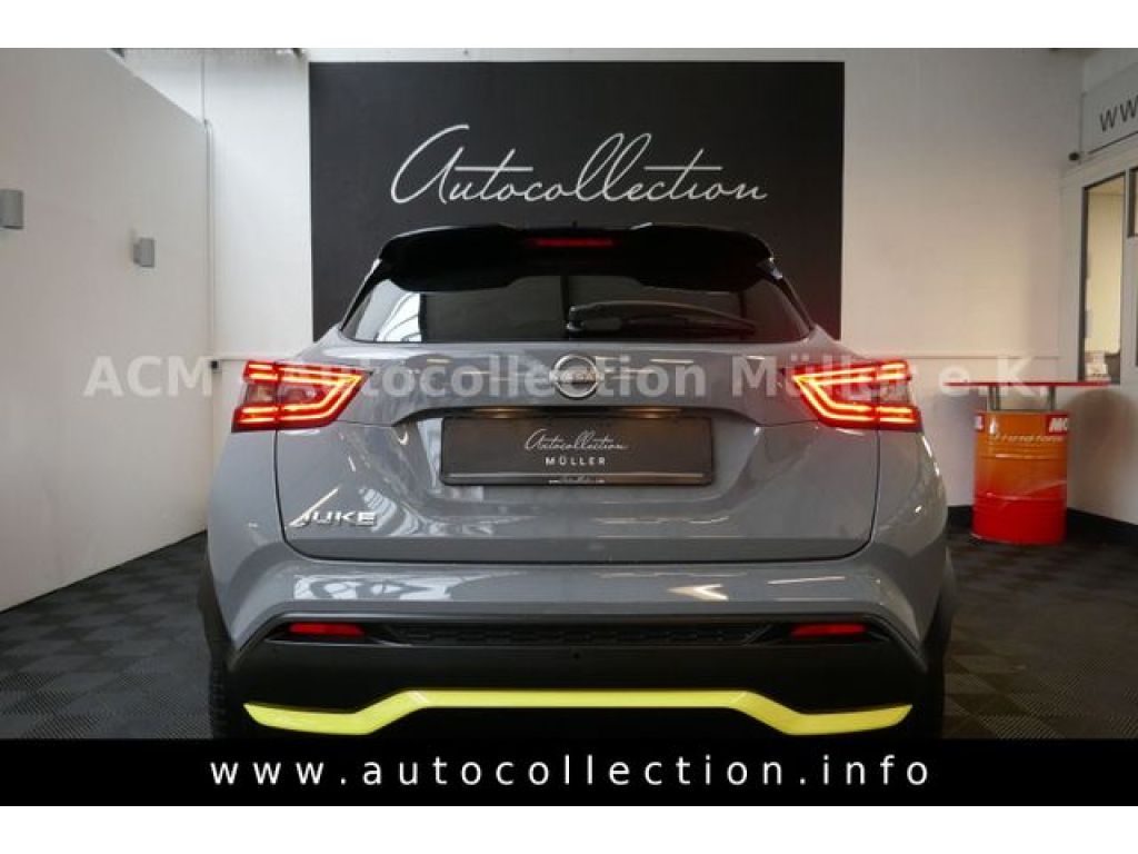2-Farben-Lackierung, 6 Lautsprecher, Abdeckkappen Außenspiegel Schwarz, Airbag Fahrer-/Beifahrerseite und Seitenairbag vorn, Ausstattungs-Paket: Nissan Connect, AUX-IN-Anschluss (AUX-IN), Außenspiegel elektr. anklappbar, Außenspiegel elektr. verstellbar, Außenspiegel heizbar, Außentemperaturanzeige, Bluetooth-Schnittstelle, Dachantenne im Haifischflossen-Design, Dachhimmel schwarz, Dachspoiler, Design-Paket Exterieur (Spicy Lemon), Einparkhilfe vorn und hinten, Fahrassistenz-System: Aktive Fahrkomfortregelung (Fahrwerksdämpfung), Fahrassistenz-System: aktiver Spurhalteassistent, mit korrigierendem Bremseingriff, Fahrassistenz-System: Autonomer Notbrems-Assistent, Fahrassistenz-System: Berganfahr-Assistent, Fahrassistenz-System: Fernlichtassistent, Fahrassistenz-System: Kurvenbremskontrolle (Aktive Spurkontrolle), Fahrassistenz-System: Sicherheitssystem ERA GLONASS mit automatischem Notruf, Fahrassistenz-System: Verkehrszeichenerkennung, Fahrer-Informations-System (FIS) mit Farbdisplay, Fahrmodusschalter, Fensterheber elektrisch vorn + hinten, Frontscheibe heizbar, Geschwindigkeits-Begrenzeranlage, Getriebe 7-Gang - Doppelkupplungsgetriebe DCT, Innenspiegel mit Abblendautomatik, Isofix-Aufnahmen für Kindersitz, Karosserie: 5-türig, Klimaautomatik, Kopf-Airbag-System, Kopfstützen vorn und hinten verstellbar, Lenksäule (Lenkrad) höhenverstellbar, Leseleuchte vorn, LM-Felgen, Motor 1,0 Ltr. - 84 kW 12V KAT, Nebelscheinwerfer LED, Parkbremse elektrisch, Radioempfang digital (DAB+), Radstand 2636 mm, Reifen-Reparaturset, Reifendruck-Kontrollsystem, Rückfahrkamera, Rücksitz geteilt/klappbar, Schadstoffarm nach Abgasnorm Euro 6d, Schalt-/Wählhebelgriff Leder, Service-System: Nissan Connect Services, Sitz vorn links höhenverstellbar, Sitz vorn rechts höhenverstellbar, Sitzbezug / Polsterung: Stoff/Kunstleder, Sitzheizung vorn, Smartphone Schnittstelle (Apple CarPlay & Android Auto), Sonnenblenden mit Spiegel (beleuchtet), Sprachbediensystem Spracherkennung, Start/Stop-Anlage, Steckdose (12V-Anschluß), Türgriffe innen verchromt, USB-Schnittstelle, Verglasung hinten abgedunkelt