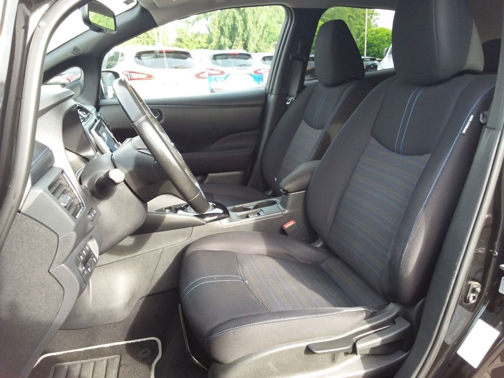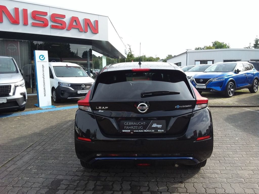 Assistenzsysteme: Anti-Blockier-System (ABS) Fahrassistenz-System: Moving Object Detection (MOD, Fußgängererkennung und bewegliche Objekterkennung) Fahrassistenz-System: Müdigkeitserkennungs-Sensor Autom. Begleitfunktion der Beleuchtung (Follow me home) Automatische Fahrlichtschaltung Elektr. Bremskraftverteilung (EBD) Fahrassistenz-System: aktiver Spurhalteassistent, mit korrigierendem Bremseingriff Fahrassistenz-System: Autonomer Notbrems-Assistent Bremsassistent (Nissan Brake-Assist) Fahrassistenz-System: Fußgängererkennung Fahrassistenz-System: Berganfahr-Assistent Fahrassistenz-System: Fernlichtassistent Fahrassistenz-System: Geschwindigkeits-Warnanlage akustisch (Speed-Limiter) Fahrassistenz-System: Spurwechselassistent Fahrassistenz-System: Totwinkel-Assistent Fahrassistenz-System: Verkehrszeichenerkennung Geschwindigkeits-Regelanlage Fahrassistenz-System: Autom. Distanzregelung mit vorausschauender Geschw.-Regelung Fahrassistenz-System: Stauassistent inkl. StopGo-Funktion Reifendruck-Kontrollsystem Scheibenwischer mit Regensensor Multimedia: Ausstattungs-Paket: Nissan Connect EV Audiosystem: Radio mit MP3-Wiedergabefunktion Radioempfang digital (DAB) 6 Lautsprecher Freisprechanlage Bluetooth AUX-IN-Anschluss (AUX-IN) USB-Schnittstelle Navigationssystem Bluetooth-Schnittstelle Audio-/Radio-Fernbedienung am Lenkrad Smartphone Schnittstelle (Apple CarPlay Android Auto) Technik Sicherheit: Airbag Beifahrerseite Airbag Fahrerseite Around View Monitor (360 Umgebungsansicht) Einparkhilfe vorn Einparkhilfe hinten Kamerasystem Around View Außenspiegel elektr. anklappbar Außenspiegel elektr. verstellbar Fensterheber elektrisch vorn + hinten Heckleuchten LED Isofix-Aufnahmen für Kindersitz Klimaautomatik Kopf-Airbag-System Schließ-/Startsystem intelligent key Seitenairbag Servolenkung elektronisch gesteuert Start-Stop-Knopf Tagfahrlicht LED Wegfahrsperre (elektronisch) Zentralverriegelung mit Fernbedienung Scheinwerfer LED Sonstiges: Außenspiegel heizbar Nebelscheinwerfer LED Akustischer Umfeldschutz (Außensound) Ambiente-Beleuchtung Außentemperaturanzeige B-Säulen schwarz Elektromotor 160 kW (cont. 90 kW) Frontscheibe Verbundglas Getriebe für Elektrofahrzeug Getränkehalter hinten Getränkehalter in Mittelkonsole Getränkehalter vorn Handschuhfach beleuchtet HV-Batterie 62 kWh Innenraumfilter: Pollenfilter Kofferraumabdeckung Ladevorrichtung Wechselstrom (bis 6,6 kW) Lenksäule (Lenkrad) höhenverstellbar Pedalerie elektr. einstellbar Pro Pilot-Paket Fahrassistenz-System: Autonomer Lenk-Assistent für selbstständiges Spurhalten Scheibenwischer mit Intervallschaltung Sitz vorn links höhenverstellbar Steckdose (12V-Anschluß) in Mittelkonsole Türgriffe außen verchromt Wärmepumpe zur Reichweitenoptimierung Wärmeschutzverglasung mit UV-Schutz Leuchtweitenregelung elektrisch Interieur: Touchscreen-Farbdisplay (8,0 Zoll) in Mittelkonsole Fahrer-Informations-System (FIS) mit Farbdisplay Innenspiegel mit Abblendautomatik Lenkrad (Leder) Rücksitz geteilt/klappba