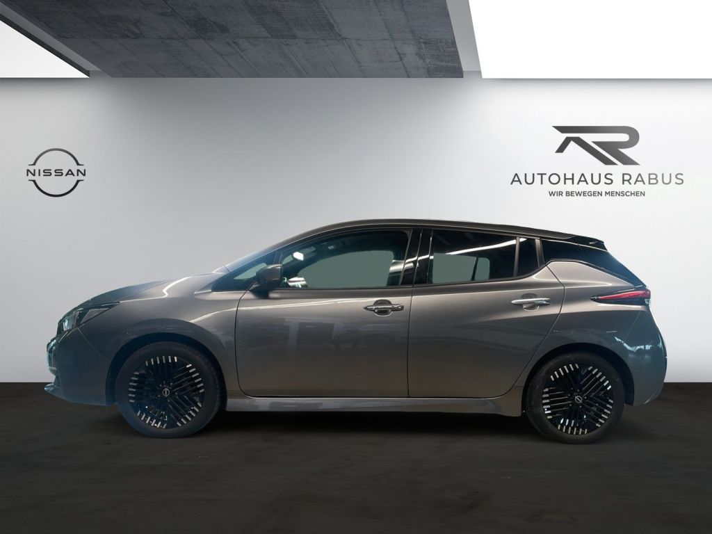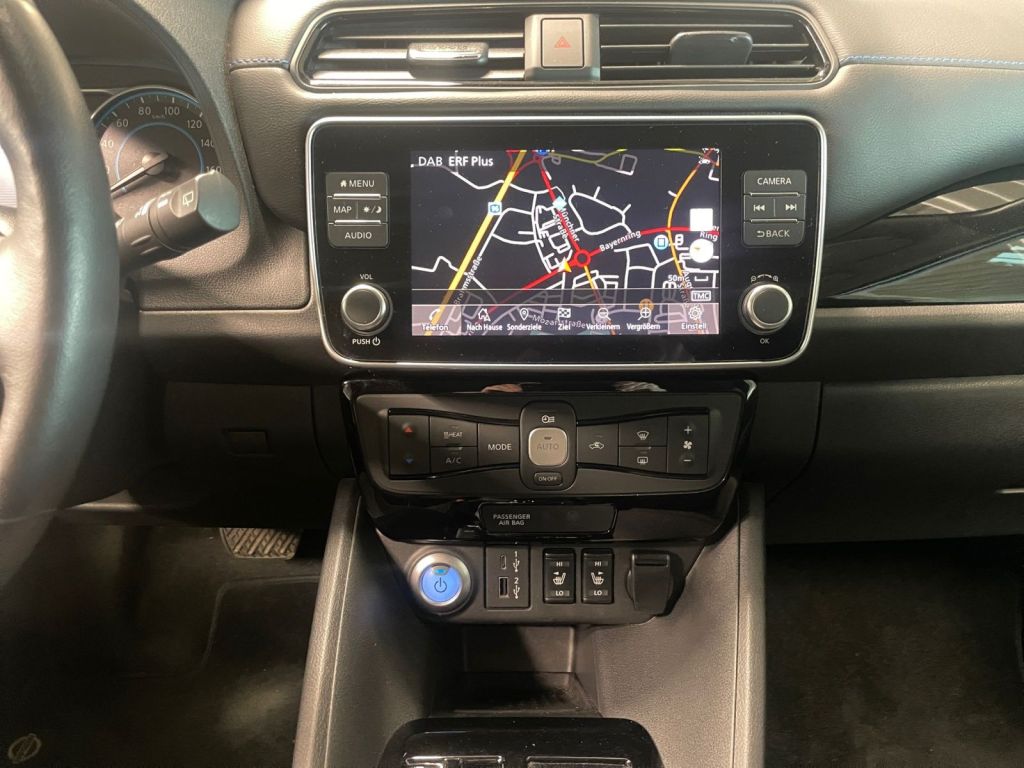 Assistenzsysteme: Anti-Blockier-System (ABS) mit elektronischer Bremskraftverteilung (EBD) und NISSAN Bremsassistent Berganfahr-Assistent Elektronisches Stabilitaetsprogramm (ESP) Fernlicht-Assistent Geschwindigkeitsregelanlage und Geschwindigkeitsbegrenzer (Speed Limiter) Intelligenter Adaptiver Geschwindigkeits- und Abstands-Assistent Intelligenter Autonomer Notbrems-Assistent mit Fussgaengererkennung Intelligenter Spurhalte-Assistent aktiv - mit korrigierendem Bremseingriff Licht- und Regensensor ProPILOT mit intelligentem autonomen: - Stau-Assistent mit Stop--Go-Funktion - Lenk-Assistent fuer selbststaendiges Spurhalten - Geschwindigkeits- und Abstands-Assistent Reifendruck-Kontrollsystem (TPMS - tyre pressure monitor system) Totwinkel-Assistent Verkehrszeichenerkennung Multimedia: Navigationssystem NISSAN Connect EV Multimedia-System mit - 8 Zoll-Farbdisplay mit Touchs. - Navig.-Sprachsteuerung inkl. RDS-TMC-Meldungen - digitale Radio DAB mit MP3-Wiedergabe - Bluetooth Audio Streaming - Freisprechanlage - Sprachsteuerung - iPod Gateway - USB-1xUSB-Port vorne,2xUSB-Ports hinten AUX- Schnittstelle - 6 Lautsprecher - EV-Telematiksystem- Routeplanung Radiozubehoer: Apple CarPlay und Android Auto Technik Sicherheit: Ausstattung: Airbag: Fahrer- und Beifahrerseite Airbag: Kopfairbags vorn und hinten Airbag: Seitenairbags vorne Fensterheber elektrisch vorn und hinten Getriebe: Automatik Intelligenter AROUND VIEW MONITOR fuer 360 Rundumsicht mit Parksensoren vorne und hinten-4 Kameras (vorne und ermoeglichen somit sicheres und praezises Einparken - inkl. Intelligente Bewegungs- und Muedigkeitserkennung Klimaautomatik - mit Pollenfilter Fahreranalyse - NissanConnect EV App zur Steuerung u.a. der Klimaanlage und des Ladevorgangs Nebelscheinwerfer Rueckfahrkamera in Farbe Servolenkung elektrisch Sitze: ISOFIX-Kindersitz-Befestigung an den Aussenplaetzen hinten Wegfahrsperre Zentralverriegelung inkl. Funkfernbedienung -intelligent Key mit Start-/Stopp-Knopf und Ladekappenverriegelung Interieur: Haifischantenne Lenkrad: Fernbedienung am Lenkrad fuer: - Audiosystem - Bordcomputer - Geschwindigeitsbegrenzer und -regelanlage Ruecksitzlehne asymmetrisch (60:40) umklappbar Exterieur: Raeder: Leichtmetall (4) 6,5 JJ x 17 Zoll mit Reifen 215/50 R 17 Sonstiges: Akustischer Fussgaengerwarner (AVAS) - Acoustic Vehicle Alerting System Aussenspiegel elektrisch einstellbar in Wagenfarbe mit integriertem Blinklicht Aussenspiegel mit automatischer Anklappfunktion Aussentemperaturanzeige Getraenkehalter vorne hinten und Mittelkonsole stufenlos automatisch abblendend im Heck und in den Aussenspiegeln) erzeugen eine 360 Vogelperspektive welche auf dem Display im Cockpit wiedergegeben wird Kofferraumabdeckung herausnehmbar mit Beleuchtung Kopfstuetzen (5) vorne und hinten hoehenverstellbar auf allen Plaetzen Lade-Anschluss vorne Typ-2 Wechselstrom (bis 6.6 kW) Ladeanschluss: Schnellladeanschluss vorn (CHAdeMO) Gleichstrom bis 50 kW - Vehicle2Grid Ready Ladekabel: EVSE-Kab