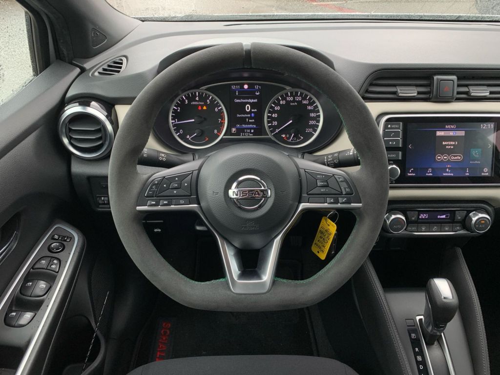 Highlight: Sportlenkrad mit Alcantara und 12 Uhr Markierung Assistenzsysteme: Anti-Blockier-System mit elektronischer Bremskraft-Verteilsystem (EBD) incl. Nissan-Bremsassistent Berganfahr-Assistent ESP - elektronisches Stabilitaetsprogramm Fahrlichtautomatik Fernlicht-Assistent Fussgaengererkennung fuer den intelligenten autonomen Notbremsassistent Geschwindigkeitsbegrenzer (Speed Limiter) Geschwindigkeitsregelanlage Intelligenter autonomer Notbremsassistent mit Kollisionswarnsystem Intelligenter Spurhalte-Assistent aktiv - mit korrigierendem Bremseingriff Reifendruck-Kontrollsystem (TPMS - tyre pressure monitor system) Verkehrszeichenerkennung Multimedia: Radio: Audiosystem - Radio AM/FM RDS - USB-Schnittstelle iPod-Gateway - Bluetooth-Schnittstelle fuer Mobiltelefone und Audio-Streaming - MP3-Wiedergabe - 7-Farbdisplay mit Touchscreen - Digitalradio (DAB+) - 4 Lautsprecher in den Vordertueren und in der A-Saeule - AUX-Eingang - Apple CarPlay und Android Auto Technik Sicherheit: Airbag: Fahrer- und Beifahrerseite Beifahrerairbag deaktivierbar Airbag: Kopfairbags vorn und hinten Airbag: Seitenairbags fuer Fahrer- und Beifahrer Fensterheber elektrisch vorn mit Komfortschaltung auf der Fahrerseite Getriebe: Automatik stufenlos XTRONIC -Getriebe Klimaanlage (manuell) mit Pollenfilter LED-Tagfahrlicht Paket: N-WAY - Flex Felgen 6Jx16 GENKI (BiColor) mit Bereifung 195/55 R16 - elektrische Fensterheber hinten - Sitzheizung vorne - elektrisch anklappbare Aussenspiegel beheizbar mit integrierten LED Blinklichtern - Parksensoren hinten - Klimaautomatik inkl. Pollenfilter - Nebelscheinwerfer - Regensensor Servolenkung elektrisch Sitze: ISOFIX-Kindersitz-Befestigungspunkte - vorne auf dem Beifahrersitz - hinten auf den aeusseren Plaetzen Start-/Stopp System Wegfahrsperre Zentralverriegelung inkl. Funkfernbedienung Interieur: Bordcomputer mit 5-TFT-Farbdisplay Kniepolsterung an der Mittelkonsole in Kunstleder Schwarz Lenkrad: Fernbedienung am Lenkrad fuer Audiosystem Bluetooth-Schnittstelle fuer Mobiltelefone und Bordcomputer Ruecksitzlehne asymmetrisch (60:40) umklappbar Exterieur: Leichtmetallfelgen/-raeder 16 schwarz Sonstiges: Ausstattung: Ablagefaecher - in der Mittelkonsole - in den vorderen Tueren - Getraenkehalter vorne und hinten Aussenspiegel in Wagenfarbe Aussenspiegel elektrisch einstellbar mit Blinklichtern CHASSIS CONTROL Technologien (CCT) - Aktive Spurkontrolle - Aktive Fahrkomfortregelung Dekoreinsaetze an Schaltknauf in chrome Geschwindigkeitsmesser und Drehzahlmesser Heckscheibenwischer mit Rueckwaertsgangautomatik und Intervallschaltung beige - oben weich unterschaeumt Kofferraumbeleuchtung Kopfstuetzen (4) vorne und hinten hoehenverstellbar Lenkrad Alcantara Fensterscheiben hinten foliert Windabweiser Tueren vorne Lenkrad: Sportlenkrad Lenksaeule hoehen- und laengsverstellbar Leselampe vorn Sitze: Fahrersitz hoehenverstellbar Sonnenblenden mit Make-Up Spiegel auf Fahrer- und Beifahrerseite Steckdose 12-Volt Tueraussengriffe vorne in Wag