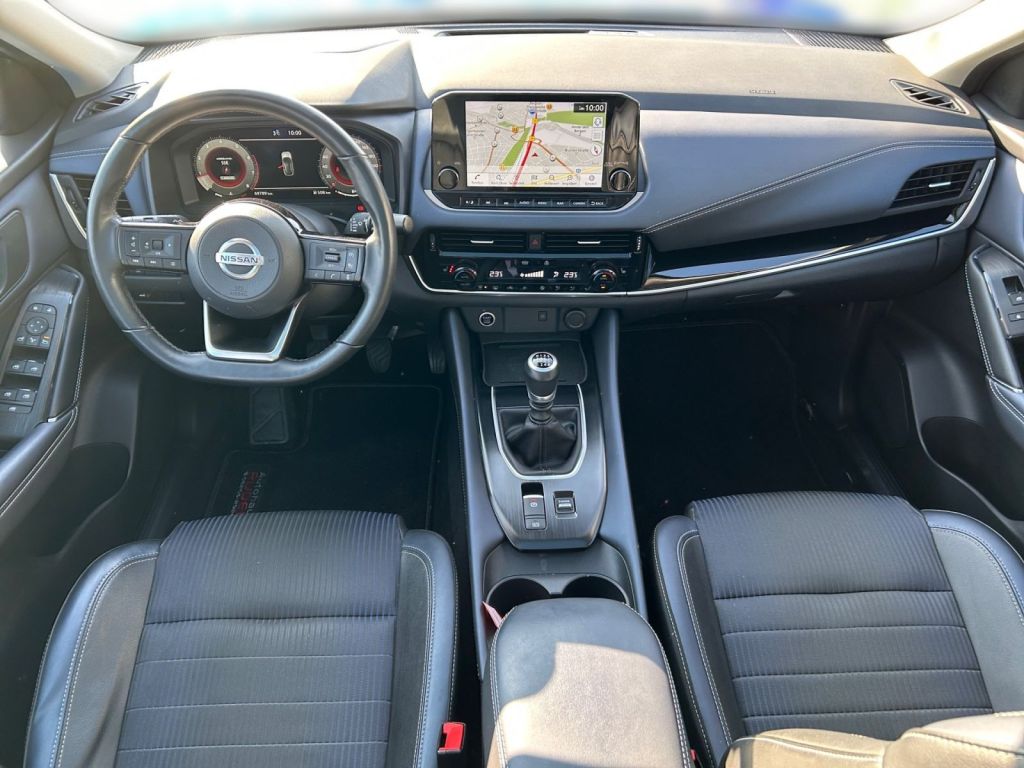 Highlights: Panorama-Glasdach Assistenzsysteme: Anti-Blockier-System (ABS) Auto-Hold-Funktion Automatische Fahrlichtschaltung Elektr. Bremskraftverteilung (EBD) Elektron. Stabilitäts-Programm (ESP) Fahrassistenz-System: aktiver Spurhalteassistent, mit korrigierendem Bremseingriff Fahrassistenz-System: Auffahrwarnsystem (Forward Collision Warning, FCW) Fahrassistenz-System: Autonomer Notbrems-Assistent Fahrassistenz-System: Berganfahr-Assistent Fahrassistenz-System: Fernlichtassistent Fahrassistenz-System: Moving Object Detection (MOD, Fußgängererkennung und bewegliche Objekterkennung) Fahrassistenz-System: Müdigkeitserkennungs-Sensor Fahrassistenz-System: Sicherheitssystem ERA GLONASS mit automatischem Notruf Fahrassistenz-System: Totwinkel-Assistent Fahrassistenz-System: Verkehrszeichenerkennung Geschwindigkeits-Begrenzeranlage Geschwindigkeits-Regelanlage mit Abstandsregelung Reifendruck-Kontrollsystem Scheibenwischer mit Regensensor Multimedia: Ausstattungs-Paket: Nissan Connect Navigationssystem mit Around View Monitor Audiosystem 6 Lautsprecher Sprachbediensystem Spracherkennung Smartphone Schnittstelle (Apple CarPlay Android Auto) Multimedia-System Nissan Connect Navigationssystem USB-Anschluss im Fond USB-Schnittstelle Technik Sicherheit: Airbag Fahrer-/Beifahrerseite Around View Monitor (360 Umgebungsansicht) Kamerasystem Around View Außenspiegel elektr. anklappbar Außenspiegel elektr. verstell- und heizbar Diebstahl-Warnanlage Fensterheber elektrisch vorn + hinten Getriebe 6-Gang Heckleuchten LED Isofix-Aufnahmen für Kindersitz Klimaautomatik 2-Zonen Kopf-Airbag-System Lenkrad mit Schaltwippen/-tasten Nebelscheinwerfer LED Rückfahrkamera Schadstoffarm nach Abgasnorm Euro 6d Scheinwerfer LED Schließ-/Startsystem intelligent key Keyless-Entry Start-Stop-Knopf Seitenairbag Seitenairbag vorn mitte (Center-Airbag) Start/Stop-Anlage Tagfahrlicht LED Business-Paket Einparkhilfe vorn undhinten Interieur: Touchscreen-Farbdisplay (9 Zoll) in Mittelkonsole Innenspiegel mit Abblendautomatik Lendenwirbelstütze Sitz vorn links, elektr. verstellbar Audiobedienung am Lenkrad Mittelarmlehne hinten mit Getränkehalter Rücksitz geteilt/klappbar Sitzbezug / Polsterung: Stoff/Kunstleder Winter-Paket Lenkrad (Leder)mit Multifunktion Frontscheibe heizbar Induktionsladeschale für Smartphone Lenkrad heizbar Sitzheizung vorn Exterieur: LM-Felgen Verglasung hinten abgedunkelt 2-Farben-Lackierung Metallic Dach schwarz lackiert Dachreling silber Heckklappe/-Deckel elektr. betätigt (Öffnung, sensorgesteuert) Sonstiges: Einparkhilfe vorn und hinten Lenkrad (Leder) mit Multifunktion Ambiente-Beleuchtung Antriebsart: Frontantrieb Service-System: Nissan Connect Services Blinkleuchten LED in Außenspiegel integriert Dachantenne im Haifischflossen-Design Dachhimmel hellgrau Fahrmodusschalter Handschuhfach beleuchtet Innenraumfilter: Pollenfilter Kniepolster Mittelkonsole seitlich Kofferraumbeleuchtung Lastenverankerung / Verzurrösen Lenksäule (Lenkrad) höhen-/längsverstell