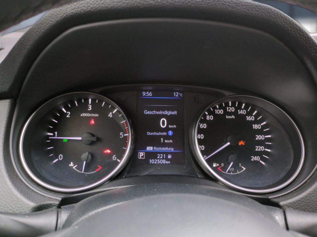 Fernlichtassistent, Einparkhilfe vorn und hinten, Rückfahrkamera, Surround-Kamerasystem, Fahrlichtautomatik, Tempomat, Auto Hold Funktion, Spracheingabesystem, Spurhalteassistent, Notbremsassistent: Nissan Brake-Assist, Fahrerassistenzpaket: Visia, Verkehrszeichenerkennung, Elektronisches Bremssystem EBS