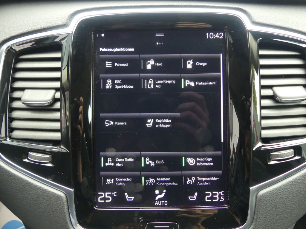 3.Sitzreihe, Airbag Beifahrerseite, Airbag Beifahrerseite abschaltbar, Airbag Fahrerseite, Ambiente-Beleuchtung, Anhänger-Stabilisierungs-Programm (TSA) Vorbereitung, Antriebsart: Allradantrieb, Applikationen am Fahrzeugheck Chrom, Applikationen an den Seitenfenstern Chrom, Armaturenbrett in Leder-Optik mit Kontrastnaht, Audiosystem High Performance Pro by Harman-Kardon, Automatische Fahrlichtschaltung / Lichtsensor, Außen-/Innenspiegel mit Abblendautomatik, Außenspiegel elektr. anklappbar, Außenspiegel elektr. verstell- und heizbar, Außenspiegel Wagenfarbe, Außentemperaturanzeige, Betätigung Heckklappe/-Deckel automatisch, Blinkleuchten LED in Außenspiegel integriert, Bordcomputer, Bremsenergierückgewinnung, Dachreling Aluminium-Optik, Digitale Instrumentierung 12, 3"-Display, Einparkhilfe vorn und hinten (hinten mit Bremsfunktion), Einstiegsleisten mit Aluminiumeinlage, Elektromotor 107 kW (Hybridantrieb), Elektron. Differentialsperre Corner Traction Control (CTC) mit Torque Vectoring, Erste Hilfe-Kasten / Verbandkasten, Exterieurumfänge lackiert, Fahrassistenz-Paket: Driver Assistance, Fahrassistenz-Paket: Driver Awareness, Fahrassistenz-Paket: Safety Assistance, Fahrassistenz-System: Bergabfahrkontrolle (HDC), Fahrassistenz-System: Berganfahr-Assistent (HSA), Fahrassistenz-System: Multikollisionsbremse (Multi Collision Brake), Fahrassistenz-System: Run-off Road Protection, Fensterheber elektrisch vorn + hinten, Gepäckraum-Abtrennung (Netz), Gepäckraumabdeckung / Rollo, Getriebe Automatik - Geartronic (8-Stufen), Heckscheibe heizbar, Hybrid 335 kW (Motor 2, 0 Ltr. - 228 kW), Induktionsladeschale für Smartphone, Infotainment-System: Android (DAB+), Innenraumfilter: Pollenfilter, Isofix-Aufnahmen für Kindersitz, Karosserie: 5-türig, Kindersicherung elektr. betätigt, Kindersitz integriert (2.Sitzreihe mitte), Klimaautomatik 4-Zonen, Knieairbag Fahrerseite, Kopf-Airbag-System, Kopfstützen hinten elektr. umklappbar, Ladekantenschutz (Aluminium), Lenkrad mit Multifunktion, Lenksäule (Lenkrad) höhenverstellbar, Lenksäule (Lenkrad) längsverstellbar, LM-Felgen, Luftqualitäts-Überwachungssystem (Clean Zone Interior Package CZIP), Make-up-Spiegel beleuchtet, Modellpflege, Motorsound-System (Audible Vehicle Alert System, AVAS), One Pedal Drive (elektronisches Gaspedal), Otto-Partikelfilter (OPF), Parkbremse elektrisch, Radioempfang digital (DAB+), Radstand 2984 mm, Reifen-Reparaturset, Reifendruck-Kontrollsystem, Rücksitzbank 3-teilig, Rücksitzlehnen klappbar, Schadstoffarm nach Abgasnorm Euro 6d, Scheinwerfer LED, Schleudertrauma-Schutzsystem (WHIPS), Seitenairbag vorn, Sensor Scheibenbeschlagerkennung, Sicherheitsgurte vorn und hinten höhenverstellbar, Sitz-Komfort-Paket, Sonnenschutzrollo an Seitenscheiben hinten, Start/Stop-Anlage, Steckdose (12V-Anschluß) im Koffer-/Laderaum, Stoßfänger vorn mit Chrom-Applikationen, Taschenhaken im Gepäckraum, Textilfussmatten 3. Sitzreihe, Textilfussmatten Premium, USB-Anschlüsse (2) im Fond, Verglasung getönt, Volvo ON CALL, Warnanlage für Sicherheitsgurte vorn und hinten ... aus erster Hand, Leder, Xenon, Klima, Klimaautomatik, Automatik, Navigationssystem, Allrad, Sitzheiz. vorn, Mwst ausweisbar, Regensensor, Vorders. elekt. verstellb., ESP, ABS, Distronic, Parktronic System, Multifunktionslenkr., Radio, Soundsystem, Tel., Bordcomputer, Tempomat, elektr. Fensterheber vorn, elektr. WFS, ZV mit Fernb., Fahrerairb., Beifahrerairb., Seitenairbag vorn, Kopfairbags, Leichtmetallfelgen, Anhaengerk., Servolenkung, Breitreifen, DZM, Dachreling, elektr. verstellb. Spiegel, elekt. verstellb. Fahrersitz, elektr. Fensterh., Sitzheizung, Lichtsensor, metallic, Schadstoffklasse: Euro 6d, Treibstoff: Hybrid, 4x4-Antrieb, Lederlenkrad, HSN 9101, Partikelfilter, HU + AU wird vor Verkauf erneuert, Feinstaubplakette: 4 - Grün, Totwinkelassistent, Start/Stop-Automatik, Tagfahrlicht, Kurvenlicht/Abbiegelicht, Rückfahrkamera, Berganfahrhilfe, Headup Display, Lichtabblendautomatik, Reifendruckverlust-Warnung, Bluetooth Freisprecheinrichtung, Freisprecheinrichtung vorbereitet, Digitaler Radioempfang (DAB), Doppelkupplungsgetriebe, Lenkrad-Schaltpaddles, ISOFIX - Aufnahme (Kindersitz), BiXenon, LED - Scheinwerfer, LED - Tagfahrlicht, 19 Zoll Leichtmetallfelgen, Bluetooth, Einparkhilfe-Sensor vorn, Einparkhilfe-Sensor hinten, Spurhalteassistent, Freisprecheinrichtung, FINANZIERUNG, INZAHLUNGNAHME & DEKRA-ZUSTANDSBERICHT MÖGLICH., Plugin Hybrid, Einparkhilfe - 360° Kamera, Notbremsfunktion, Anhä,ngerkupplung schwenkbar, Touchscreen, USB-Anschluss, Auffahrwarnsystem, Bergabfahrhilfe, Digitale Instrumentierung, Tempomat mit Bremsfunktion, Verkehrszeichenerkennung, Parkbremse elektrisch, Sitzbelüftung, Heckklappenöffnung elektrisch, Keyless-Entry, Airbag weite