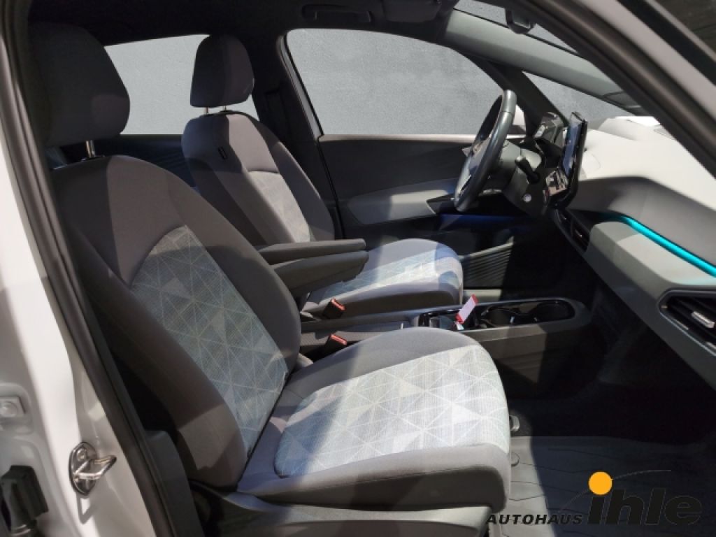 - Weiteres: Bordwerkzeug, Wagenheber und Tire Mobility Set: 12-Volt-Kompressor und Reifendichtmittel, Winterräder(zusätzlich), 4 Stahlräder 7, 5 J x 18, AirStop®-Winterreifen 215/55 R 18 T, 4 Leichtmetallräder East Derry 7, 5 J x 18 in Schwarz, Oberfläche glanzgedreht East Derry 7, 5 J x 18 in Schwarz /glanzgedreht, Reifen 215/55 R 18, Netzladekabel für Haushalts-Steckdose, Gletscherweiß Metallic/Schwarz, Ausstattung City, Diversity-Antenne für FM-Empfang, Außenspiegel elektrisch einstell-, anklapp- und beheizbar, mit Beifahrerspiegelabsenkung, Umfeldbeleuchtung mit Logoprojektion, Außenspiegel Fahrerseite asphärisch, Beifahrerseite konvex, Dachleiste schwarz matt, Lufteinlass und Schweller schwarz matt, LED-Scheinwerfer mit automatischer Fahrlichtschaltung, LED-Rückleuchten, Wärmeschutzverglasung grün, seitlich und hinten, Frontscheibe Verbundglas getönt, Digitaler Radioempfang DAB+, Radio Ready 2 Discover, 4+1 Lautsprecher, Sprachbedienung, Notrufsystem eCall, 2 USB-C-Schnittstellen vorn, 2 USB-C-Ladebuchsen an der Mittelkonsole hinten, App-Connect inkl. App-Connect Wireless für Apple CarPlay und Android Auto, Einparkhilfe - Warnsignale bei Hindernissen im Front- und Heckbereich, Navigationssystem Discover Pro, Car2X, Kopfairbags vorn und hinten, Seitenairbags vorn, Center-Airbag, Mittelkonsole mit beleuchtetem Ablagefach mit Rollo, 2 Becherhalter, Klimaanlage Climatronic mit Aktiv-Kombifilter und Standklimatisierung, Innenraumfilter: Aktiv Kombifilter, Vordersitze beheizbar, Sitzmittelbahnen der Vordersitze und der äußeren Rücksitzplätze in Stoff Fragment, Fahrersitz höheneinstellbar, Armlehne für Vordersitze, 3 Rücksitze, Rücksitzlehne asymmetrisch geteilt umklappbar, Sitzausstattung: 5-Sitzer, Kopfstützen hinten (3-fach), Schlüsselloses Startsystem Keyless Start ohne Safe-Sicherung, Ambientebeleuchtung 10-farbig, Innenspiegel automatisch abblendend, e-Sound, Getränkehalter vorn, ISOFIX-Halteösen für Kindersitze auf den äußeren Rücksitzen sowie auf dem Beifahrersitz, i-Size-kompatibel, Verbandtasche, Warndreieck und Warnweste, Bremsassistent, Notbremsassistent Front Assist mit Fußgänger- und Radfahrererkennung, Spurhalteassistent Lane Assist, Multifunktionslenkrad in Leder, beheizbar, mit Touch-Bedienung, Fahrprofilauswahl, Heckantrieb, Hochvolt-Batterie 55 kWh (brutto) (netto: 45kWh), 7, 2 kW AC-Ladeleistung (Wechselstrom), Maximale DC-Ladeleistung (Gleichstrom) abhängig von der Antriebsbatterie, Ladekabel Mode 3 Typ 2, 16 A, Performance Upgrade, ID.3 City, Kurzheck, Getriebe für Elektroantrieb ( 1-Gang ), Elektromotor 110 kW (cont. 70 kW), Scheibenwischer mit Regensensor, Servolenkung elektro-mechanisch und geschwindigkeitsabhängig, Radioempfang digital (DAB+), Notrufsystem, Sprachsteuerungs-System, Heckleuchten LED, Ambiente-Beleuchtung (10 Farben), Audiosystem Ready 2 Discover (inkl. Streaming & Internet, Touchscreen, Bluetooth), Lenkrad heizbar (Leder) mit Multifunktion, Scheinwerfer LED inkl. Automatische Fahrlichtschaltung, Klimaanlage Climatronic 1-Zonen, Einparkhilfe vorn und hinten, Isofix-Aufnahmen für Kindersitz an Beifahrersitz und Rücksitz (inkl. i-Size-Kindersitze), Außenspiegel elektr. verstell.