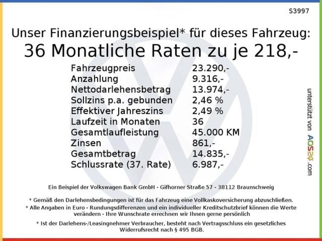 Fahrzeug-Nummer: S3997, Aus erster Hand, HU/AU neu, Standheizung m. FB, Navigationssystem Discover Media, Klimaautomatik 2 Zonen, LED-Scheinwerfer, Interieur Stoff, Einpark-Assistent - selbstlenkend, Sitzheizung, El. Fensterheber 4-fach, Window/Kopfairbags, ESP (el. Stabilitäts Programm), Ehem. empfohlener Verkaufspreis (UPE) 35.640 EUR, deep black perleffekt Metallic, 5 Sitzplätze, DAB digitaler Radioempfang, Apple CarPlay, Android Auto, Interieurfarbe Schwarz, Alufelgen 16 Zoll, ABS, Zentralverriegelung m.FB, Elektronische Wegfahrsperre, Traktionskontrolle, Bordcomputer, Schadstoffklasse Euro 6e, Elektron.Servolenkung, Dachreling, Differenzialsperre, Geteilte Rückbank, Isofix-System, Komfort-Sitz(e), Leder-Lenkrad, Mittelarmlehne, Lichtsensor, Reifendruckkontrolle, Scheckheftgepflegt, Sitzhöhenverstellung, Bluetooth Anbindung, Wärmedämmendes Glas, 4 Türen, Garantie, Frontantrieb, Multifunktionslenkrad, Spiegel (el.) klappbar heizbar, Sonderaktion: VW Top Leasing, Unfallfrei, Anfahrassistent, Motor-Start-Stopp-Funktion, Auffahr-Warnsystem, Spurhalteassistent, Müdigkeitswarnsystem, LED-Tagfahrlicht, Nichtraucherfahrzeug, Notbremsassistent, Touchscreen, Notrufsystem, Digitales Cockpit, Umweltplakette grün, Verkehrsschilder-Assistent, Reifen-Pannenkit, Elektronische Parkbremse, Energierückgewinnung (Rekuperation), Werksdienstwagen, Leasing-Fzg, Life, Wartungsintervallverlängerung, Schublade unter dem rechten Vordersitz, Infotainment-Paket Discover Media, Fußgängererkennung, Vorbereitet für VW Connect und VW Connect Plus, Umfeldbeleuchtung mit Logoprojektion, Volldach, Außenspiegelgehäuse in Dachfarbe, Dekoreinlagen Pewter matt, 6 Lautsprecher, Ohne Geschwindigkeitsregelanlage (GRA), LED-Rückleuchten dunkelrot, App-Connect Wireless für Apple CarPlay und Android Auto, Änderungen, Zwischenverkauf und Irrtümer sind ausdrücklich vorbehalten. Die Beschreibung dient der allgemeinen Identifizierung des Fahrzeuges und stellt keine Gewährleistung im kaufrechtlichen Sinne dar. Fahrzeugabbildung zeigt Sonderausstattungen. Bildliche Darstellungen können vom Auslieferungsstand abweichen. Ausschlaggebend ist die Beschreibung gemäß Kaufvertrag